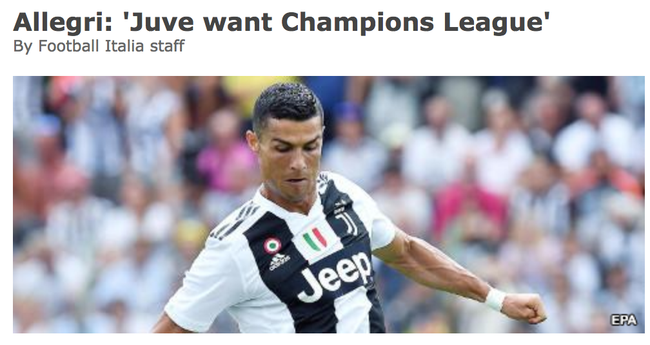 “在C罗,埃姆雷-詹这样的球员加盟后,我们自然很兴奋并且具有梦想,我们必须通过场上的表现来提高成绩。我们想要意甲冠军,意大利杯还有意大利超级杯,同时我们对赢得欧冠奖杯更具信心。”
