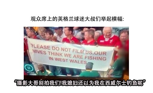 观众席上的英格兰球迷大叔们举起横幅
