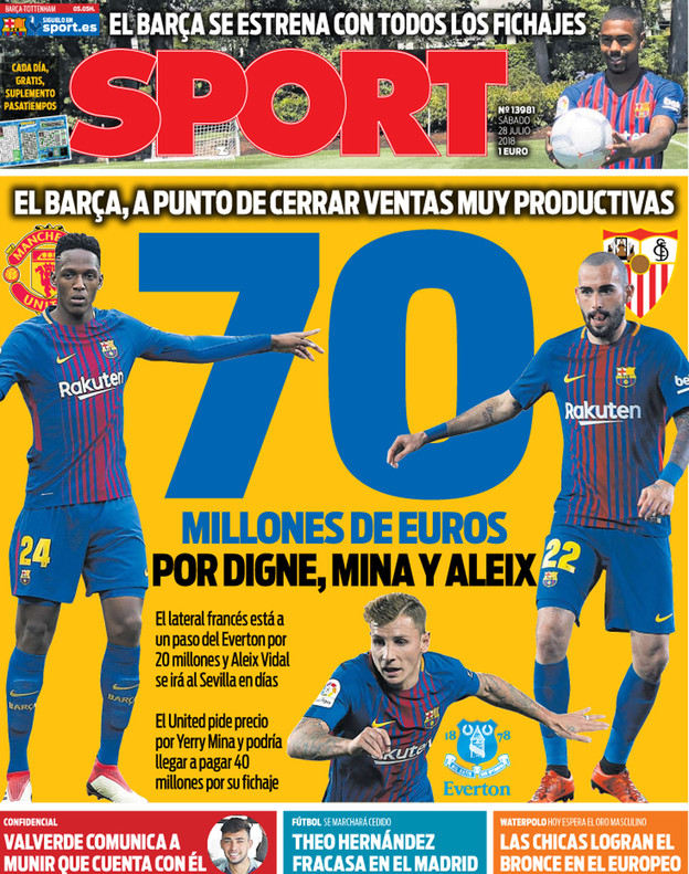 巴萨今夏动作频频,已经签下了阿图尔、朗格莱和马尔科姆三员大将,不过最近一段时间并没有球员被交易离队。而据《每日体育报》透露,巴萨的清洗计划已经在悄然进行了。 《每日体育报》在今日的封面中表示,米纳、阿莱士-比达尔和迪涅三人将被清洗出队,巴萨将因此获得到大约7000万欧元的收入,用于进行其他位置的签约补强。