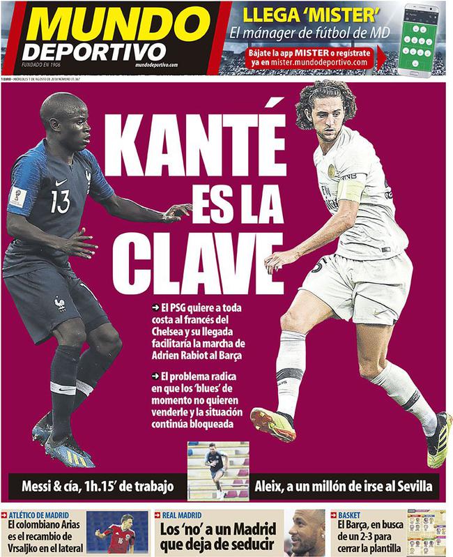 不过《世界体育报》头版封面的消息给了巴萨一丝希望。该报表示巴黎正在追求切尔西的中场坎特,若这笔交易成功,那巴黎队拉比奥特的态度将出现松动,这是巴萨唯一的机会。