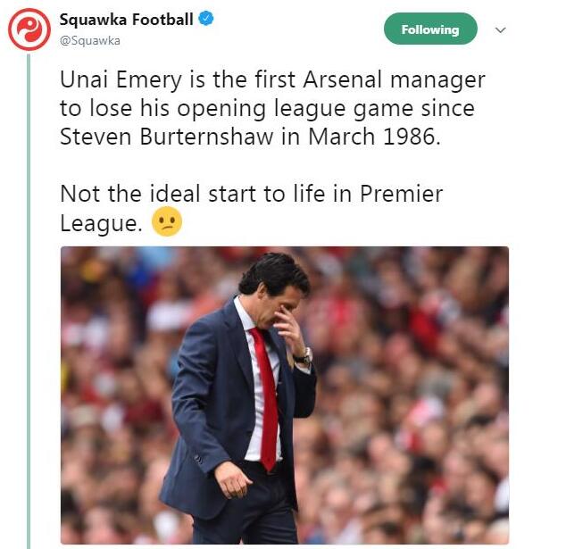 阿森纳正式开启了新的时代。埃梅里作为枪手主帅完成了他在英超首秀,但很遗憾他处子秀就遇上了如日中天的曼城,最终阿森纳主场0-2饮恨。打完曼城之后,紧接下来阿森纳将客场面对切尔西,不得不说埃梅里的英超开局堪称地狱模式! 本场失利也让埃梅里创造了一个尴尬的记录,他成为近32年里,首位联赛秀以失利告终的阿森纳主帅。上一位执教阿森纳首秀输球的主帅还要追溯到1986年3月,当时史蒂夫-博特恩肖在执教枪手的首秀当中以0-1负于了托特纳姆热刺。 瓜迪奥拉赛前一个劲的吹捧埃梅里,称他能够带领阿森纳挤入争冠的行列。但事实上,埃梅里却是瓜迪奥拉的送分童子,从西甲送到了英超,算上本场比赛。埃梅里总共11次对阵瓜迪奥拉,但没有赢过一场,战绩是4平7负,处于完全的劣势。