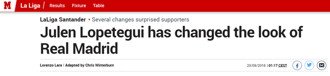 一场2-0,正式开启了皇马新赛季的征程,在没有了C罗、没有了齐达内的情况下,洛佩特吉的皇马在这场比赛中,给了球迷眼前一亮的感觉。 对于这支全新的皇马来说,要想赢得球迷们的认可,是一件非常困难的事情。因为在齐达内和C罗的时代,皇马真的太成功了,欧冠3连冠、40场不败,如今的皇马,要想去超越这一切,真的是太难了。哪怕他们做的有一点不好,都会被推到舆论的风口浪尖上。 上一场同马竞的欧洲超级杯,皇马2-4不敌对手,在被对手终结欧洲赛场统治的同时,还因为这4粒丢球创下了一系列队史最差纪录。新帅洛佩特吉也饱受质疑,他的排兵布阵和临场调整,都受到了媒体的抨击。不过在这场西甲揭幕战中,洛佩特吉和他的皇马的表现,又让人看到了希望。