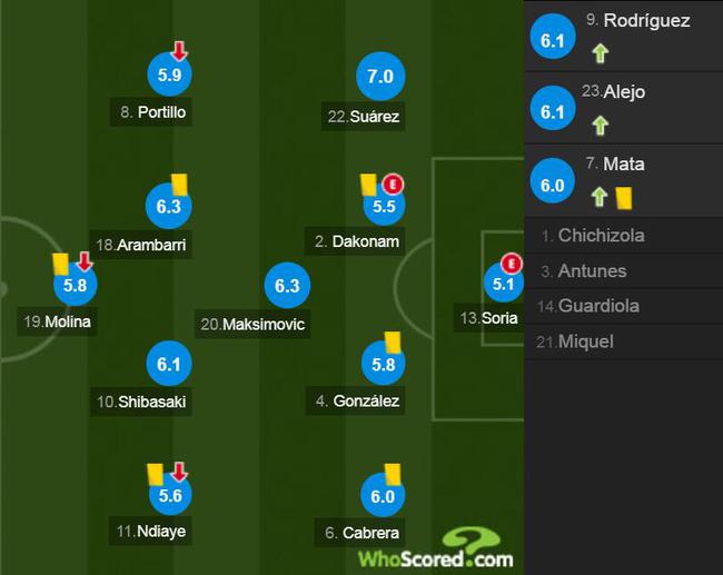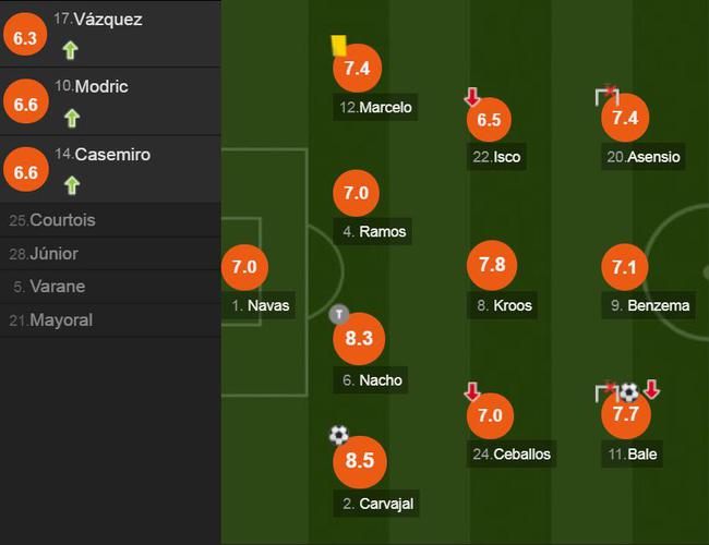 皇马第51分钟扩大比分,阿森西奥抢断蒂金后左路传中偏转,贝尔10码处扫射右下角入网,2-0。3分钟后,马塞洛禁区边缘突破受阻,阿森西奥禁区弧顶抽射又憾中左侧立柱弹出。卡塞米罗替换伊斯科出常阿森西奥同本泽马踢墙配合后禁区边缘内推射,索里亚沉稳没收皮球。